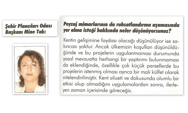 Peyzaj Mimarları‘ nın 11.11.2011 tarihinde Büyükşehir Belediye Meclisi‘ nde kabul edilen Yeni İmar Yönetmeliği‘ nde yerini almasının akabinde konuyla ilgili yorumlar devam ediyor.