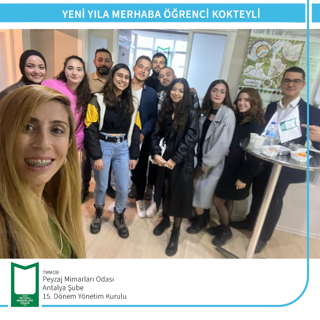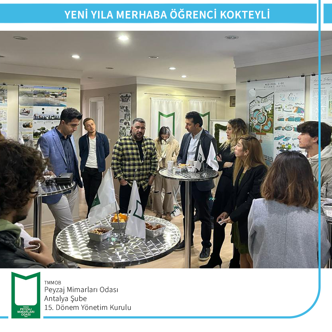 TMMOB Peyzaj Mimarları Odası Antalya Şubesi tarafından 14 Aralık 2022 tarihinde öğrencilerimiz için Yeni Yıla Merhaba Kokteyl`i düzenlemiştir.