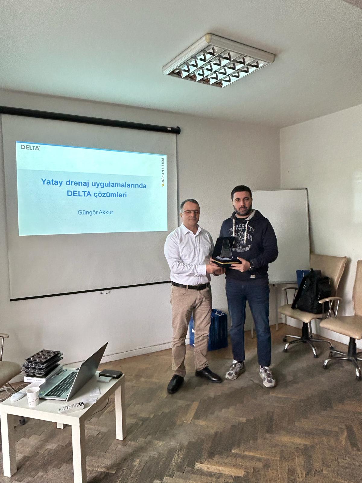 Şube etkinliklerimize desteklerinden ve bilgi birikimlerini üyelerimiz ile paylaşan Dörken Sistem A.Ş.`ye Şube Başkanımız Sn. Murat ÇELİK tarafından teşekkür plaketi takdim edilmiştir.