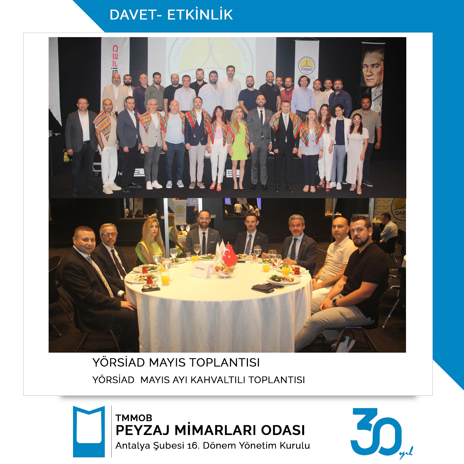 Yörük Sanayici ve İş İnsanları Derneği tarafından düzenlenen Mayıs Ayı Toplantı Kahvaltı etkinliğinw Şube Başkanımız Gülsüm Kıldan katılım sağlamıştır.Toplantıda üyelere ve misafirlere Peyzaj Mimarları Odası, işleyişi faaliyetleri ve Antalya’daki ruhsat aşamasındaki peyzaj projeleri ile ilgili bilgiler verilmiştir.